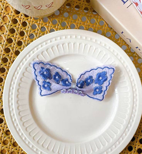 • Daisy Embroidery Bow Pet Hairclip