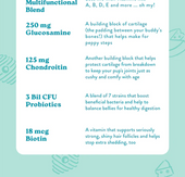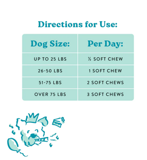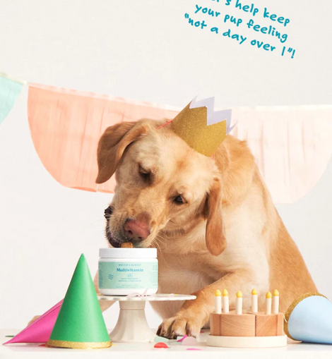 Let’s help keep your pup feeling “not a day over 1”! A daily supplement to support overall pup-wellness – from healthy skin and a shiny coat, to a happy tummy, to strong joints – this tasty chew has it all. Oh… and did we mention our immune-supporting, essential vitamin blend? (Yup, we added that, too!)