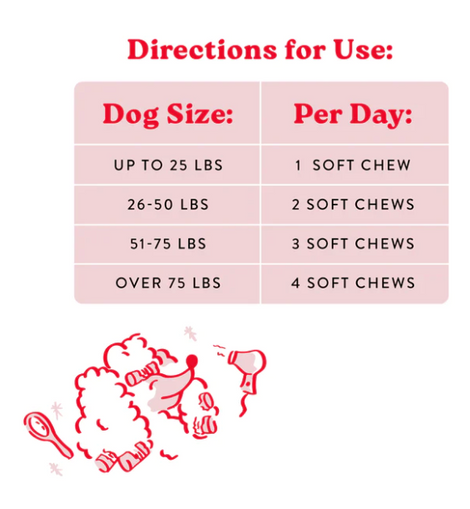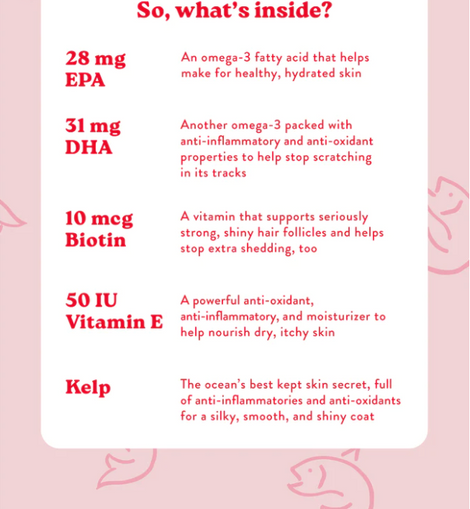 Let’s help give your pup’s coat a healthy (and extra shiny!) boost. A daily supplement to support healthy skin and coat. Our formula (with tasty, USA salmon!) includes vitamin E and essential fatty acids, too.