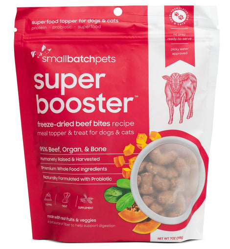 Single-source protein treats for dogs and cats featuring 95% humanely-raised meat, organ, and bone. Boosted with bacillus subtilis probiotic, balanced omega 3 & 6 fatty acids, and