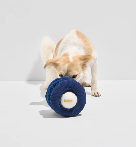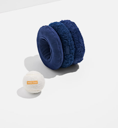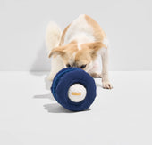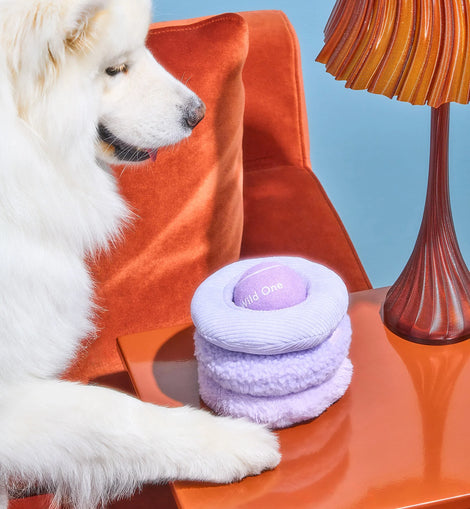 A puzzle toy packed with sounds, textures, and reward keep your pup busy and captivated. Features a hidden tennis ball inside a tri-stack of sherpa, corduroy, and fluff textures, with crinkle, high and low squeak sounds.