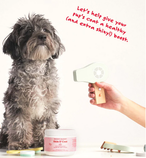 Let’s help give your pup’s coat a healthy (and extra shiny!) boost. A daily supplement to support healthy skin and coat. Our formula (with tasty, USA salmon!) includes vitamin E and essential fatty acids, too.