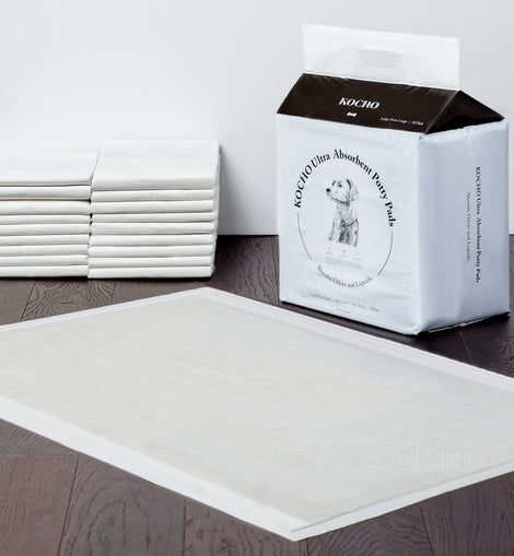 KOCHO's Potty Pads are made of 6 ultra-thick carbon-filled layers and it is 2 x thicker than the traditional potty pads. The activated carbon traps and eliminates unpleasant odors and keeps your home fresh. It prevents urine from returning to the surface and dirtying paws. Recommended for puppy/kitty training, incontinent or senior dogs/cats and lining crates and carriers.