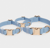 Explore our lightweight, buttery soft, odor resistant, all-weatherproof Cloud Dog Collar we developed using 100% vegan PVC coated webbing that’s been tested to withstand approximately 750 lbs of pull. Collars are finished with luxe light gold rust-resistant quick release buckle. Please measure your pup's neck to ensure the right fit. Available in 3 sizes and pair this leash with our matching waste bag holder and waterproof Cloud Leash.  Hardware: Made with light gold rust-resistant zinc alloy and strength tested to withstand up to 450+ of lbs. Can't decide? Save 10% on any 3+ items with code BUNDLE10 or save 15% on any 5 items with code BUNDLE15. Be Part of Our Community We love seeing your pet in our products!
