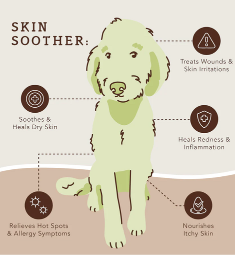 Skin Soother is the go-to remedy for healing and soothing dry, itchy skin. In addition to nourishing the skin, this balm treats and heals redness and inflammation, hot spots, rashes, allergy irritations, cuts and wounds, bug bites, and more. Antibacterial, anti-fungal, and anti-inflammatory, Skin Soother does it all!